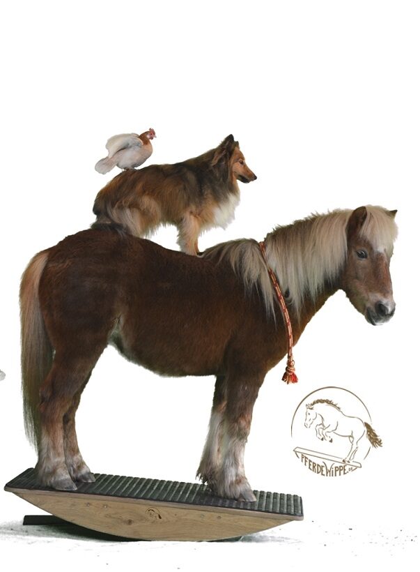 Am nächsten Tage hielten sie nach einem guten Frühstück Rat: „Und wenn wir hier bleiben? Die Leute scheinen wirklich wohlgesonnen zu sein, ich habe sie nachts reden gehört,“ sagte der Hund. „Sie würden mit uns turnen wollen.“ Das Pferdchen sprach: „Ich habe Futtertaschen und Clicker gesehen.“ Die Henne fügte hinzu: „Es gibt hier betagte Artgenossinen, die Menschen trainieren, damit sie ihnen Körner geben.“ So beschlossen die drei Freunde, in Ochtmannien zu bleiben.