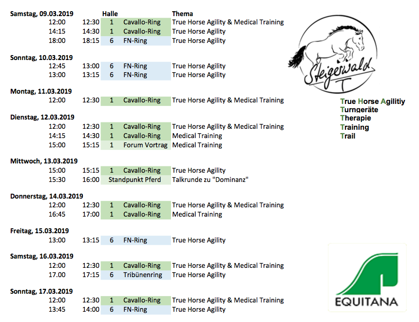 Die Zeiten findet Ihr in der Tabelle unter diesem Beitrag oder auf der Seite der Equitana.
